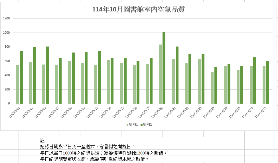 114年 10月 圖書館室內空氣品質紀錄
