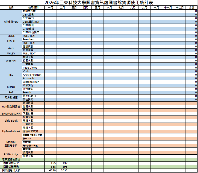 圖書館圖書資源統計月報表